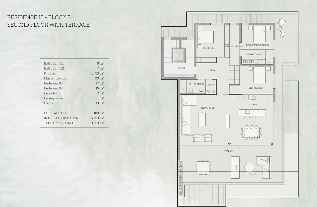 House > Block B > Residence 07 015 A Masterpiece of Architecture Second FloorPrice: 2.680.000€. Rooms 3 Bathrooms 2 Surface 180 m2 Terrace 83,50 m2 Rooms 3 Bathrooms 2 Surface 180 m2 Terrace 83,50 m2 Residence 015 Want to know more? Request more information Consult the plans See plansBuilding specifications
