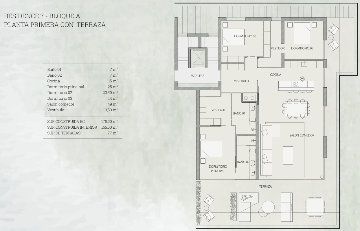 Home > Bloque A > Residence 07 07 Una Pieza Maestra de la Arquitectura Planta 1Precio: 2.230.000€ Habitaciones 3 Baños 2 Superficie 175,50 m2 Terraza 77 m2 Habitaciones 3 Baños 2 Superficie 175,50 m2 Terraza 77 m2 Residence 07 ¿Quieres saber más? Pedir más información Consulta los planos Ver planosMemoria de calidades