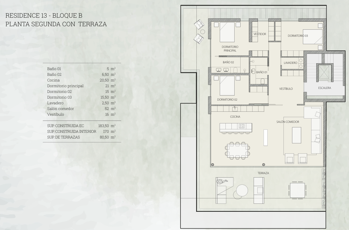 Home > Bloque B > Residence 013 013 Una Pieza Maestra de la Arquitectura Planta 2Precio: 2.680.000€ Habitaciones 3 Baños 2 Superficie 183,50 m2 Terraza 80,50 m2 Habitaciones 3 Baños 2 Superficie 183,50 m2 Terraza 80,50 m2 Residence 013 ¿Quieres saber más? Pedir más información Consulta los planos Ver planosMemoria de calidades