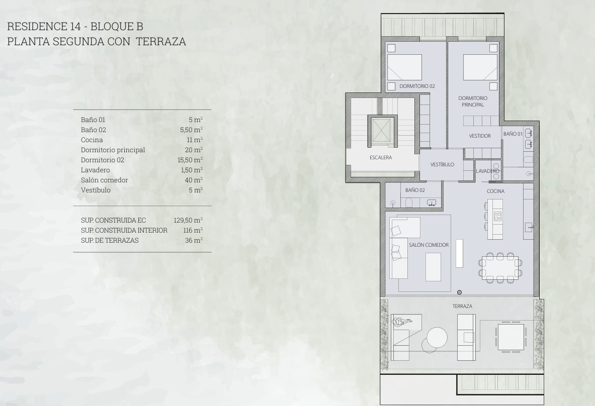 Home > Bloque B > Residence 014 014 Una Pieza Maestra de la Arquitectura Planta 2Precio: 1.530.000€ Habitaciones 2 Baños 2 Superficie 129,50 m2 Terraza 36 m2 Habitaciones 2 Baños 2 Superficie 129,50 m2 Terraza 36 m2 Residence 014 ¿Quieres saber más? Pedir más información Consulta los planos Ver planosMemoria de calidades