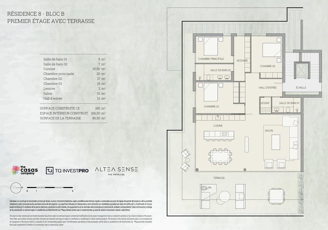 Accueil > Bloc B > Résidence 08 08 Un chef-d'œuvre d'architecture Etage 1Prix : 2.330.000€ Chambres 3 Toilettes 2 Surface 180 m2 Terrasse 86,50 m2 Chambres 3 Toilettes 2 Surface 180 m2 Terrasse 86,50 m2 Résidence 08 Vous voulez en savoir plus ? Demander plus d'informations Consulter les plans Voir les plansSpécifications des bâtiments