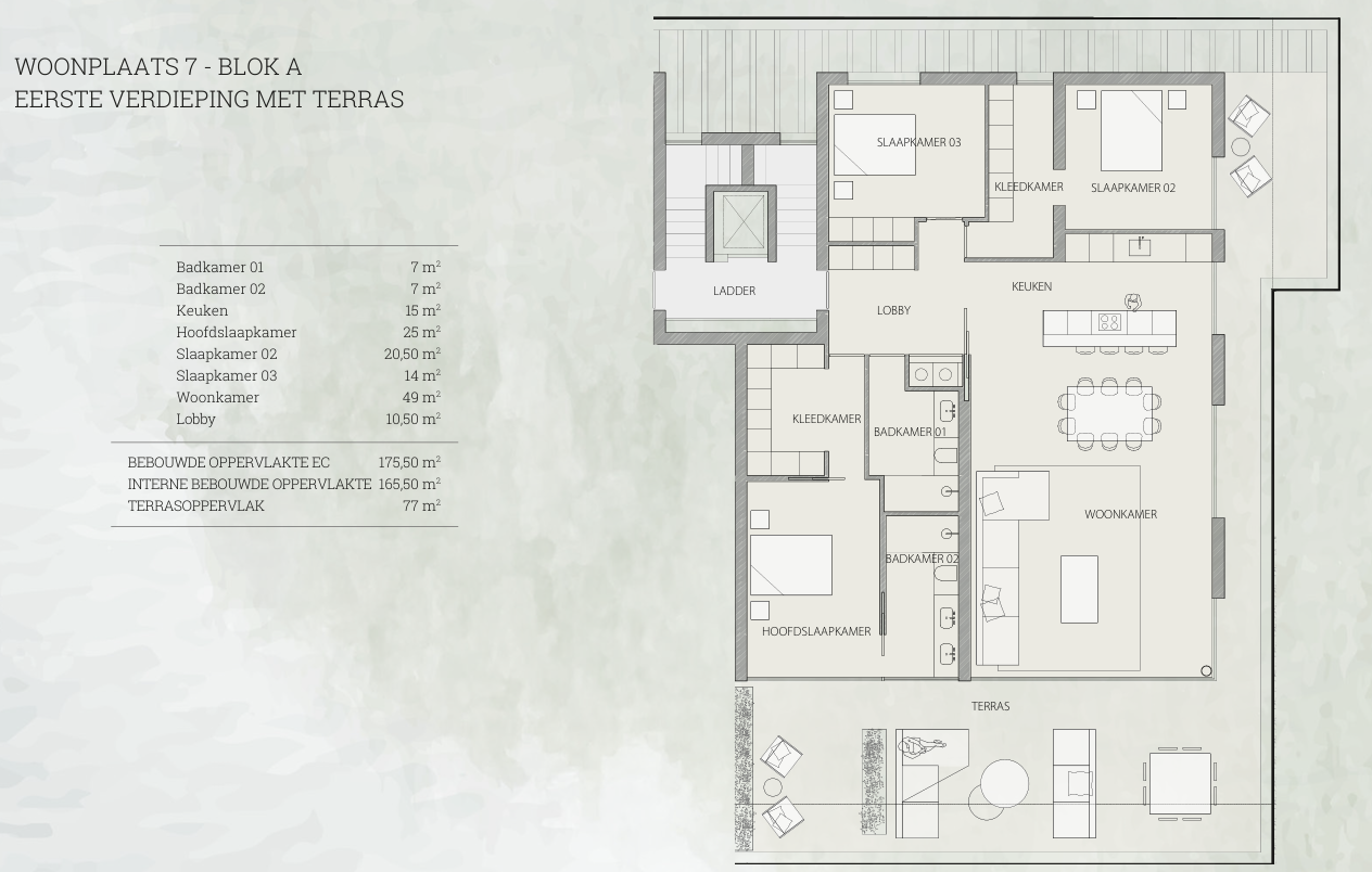 Home > Blok A > Verblijf 07 07 Een meesterwerk van architectuur Verdieping 1Prijs: 2.230.000€. Kamers 3 Toiletten 2 Oppervlak 175,50 m2 Terras 77 m2 Kamers 3 Toiletten 2 Oppervlak 175,50 m2 Terras 77 m2 Verblijf 07 Wil je meer weten? Meer informatie aanvragen Raadpleeg de plannen Plannen bekijkenBouwspecificaties