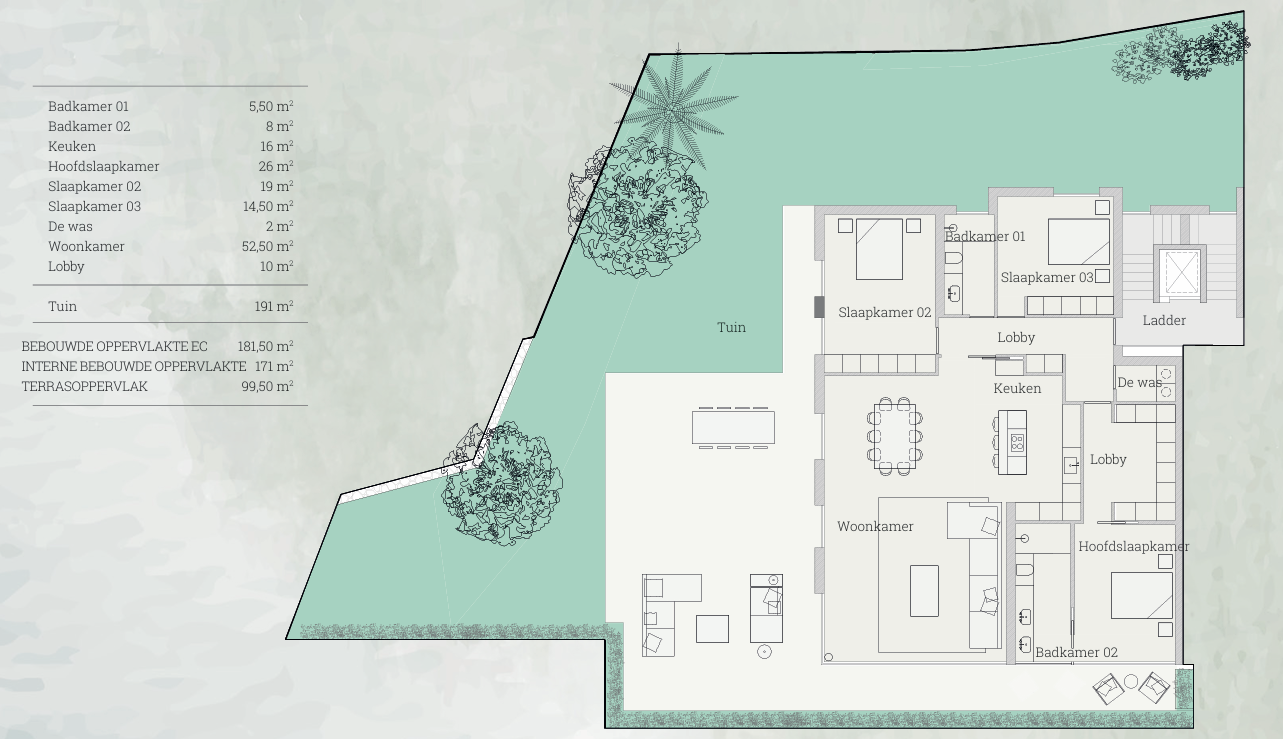 Home > Blok A > Woning 01 01 Een meesterwerk van architectuur Verdieping 1Prijs: 1.930.000€. Kamers 3 Toiletten 2 Oppervlak 181,50 m2 Terras 99,50 m2 Tuin 191 m2 Kamers 3 Toiletten 2 Oppervlak 181,50 m2 Terras 99,50 m2 Tuin 191 m2 Woning 01 Wil je meer weten? Meer informatie aanvragen Raadpleeg de plannen Plannen bekijkenBouwspecificaties