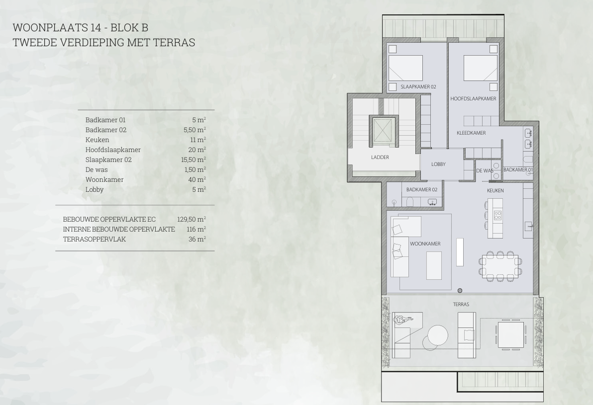 Home > Blok B > Verblijfplaats 014 014 Een meesterwerk van architectuur Verdieping 2Prijs: 1.530.000€ Kamers 2 Toiletten 2 Oppervlak 129,50 m2 Terras 36 m2 Kamers 2 Toiletten 2 Oppervlak 129,50 m2 Terras 36 m2 Woning 014 Wil je meer weten? Meer informatie aanvragen Raadpleeg de plannen Plannen bekijkenBouwspecificaties